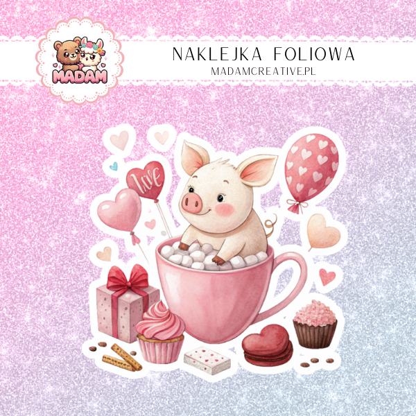 Naklejka Foliowa Świnka w Kubku – Gorąca kąpiel czy kakao? Świnka sama nie wie! Madam