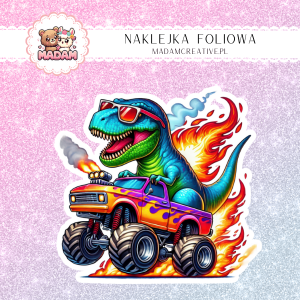 Naklejka Foliowa T-Rex Turbo – Podpalony dinozaur, który nie zna prędkości światła Madam