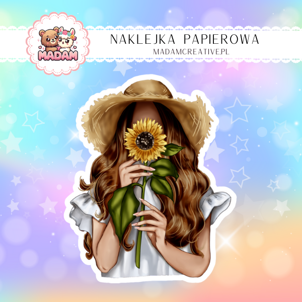 Naklejka Papierowa Pojedyncza Dziewczyna z Słonecznikiem – Wiosenny urok i naturalne piękno! Madam