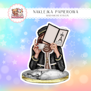 Naklejka Papierowa Pojedyncza Francuska Dziewczyna z Kawą – Elegancja i aromat Paryża! Madam