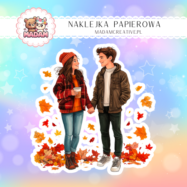 Naklejka Papierowa Pojedyncza Jesienny Spacer – Para zakochanych i szelest liści pod butami! Madam