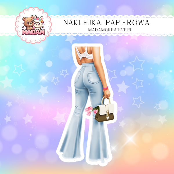 Naklejka Papierowa Pojedyncza Stylowa Dziewczyna z Torebką – Klasyka i urok w codziennym wydaniu! Madam