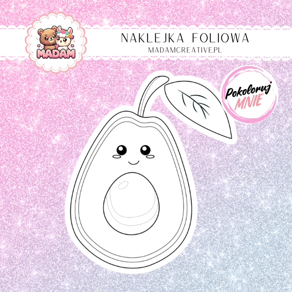 Naklejka do Kolorowania dla Dzieci Awokado – Zielony Uśmiech Zdrowia! MaDam Creative