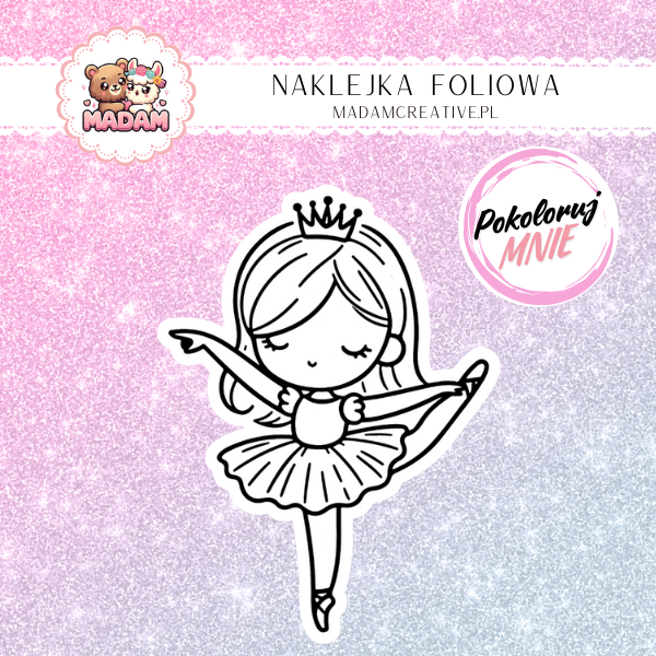 Naklejka do Kolorowania dla Dzieci Baletnica w Spódniczce – Tańcząca Wróżka Snu! MaDam Creative
