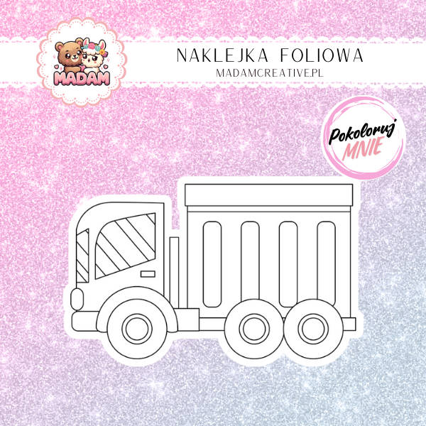 Naklejka do Kolorowania dla Dzieci Ciężarówka – Wielki Transport Uśmiechów! MaDam Creative