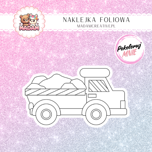 Naklejka do Kolorowania dla Dzieci Ciężarówka z Ładunkiem – Załadunek Radości! MaDam Creative