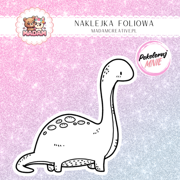 Naklejka do Kolorowania dla Dzieci Dinozaur – Łagodny Olbrzym z Przeszłości! MaDam Creative