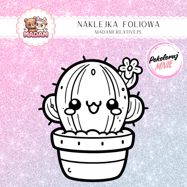 Naklejka do Kolorowania dla Dzieci Kaktus z Kwiatkiem – Kolce z Nutką Romantyzmu! MaDam Creative
