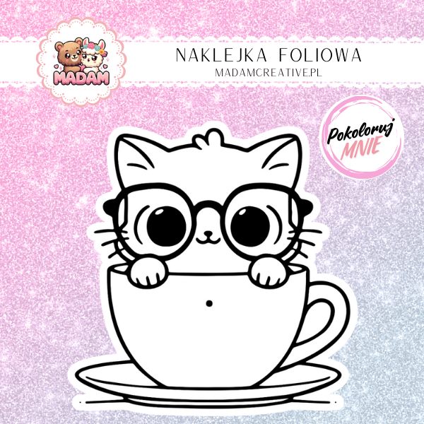 Naklejka do Kolorowania dla Dzieci Kotek w Filiżance – Herbata z Mruczkiem! MaDam Creative