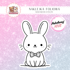 Naklejka do Kolorowania dla Dzieci Królik z Muchą – Elegancja w Uszach! MaDam Creative