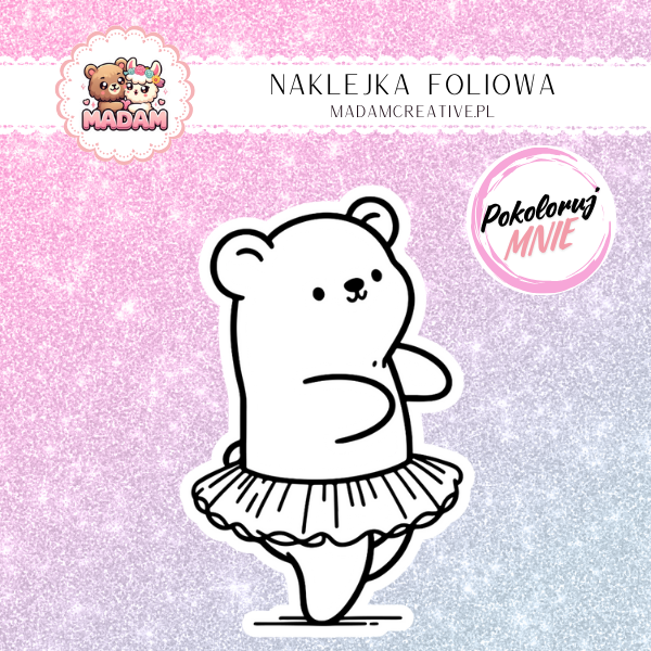 Naklejka do Kolorowania dla Dzieci Miś Baletnica – Taniec na Cztery Łapy! MaDam Creative