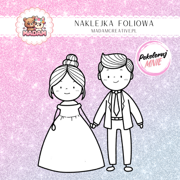 Naklejka do Kolorowania dla Dzieci Para Ślubna – Miłość w Bieli i Marzeniach! MaDam Creative