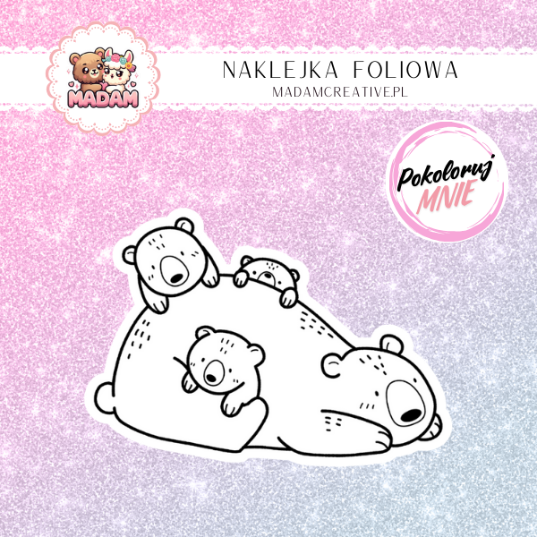 Naklejka do Kolorowania dla Dzieci Śpiące Misie – Drzemka z Rodziną! MaDam Creative