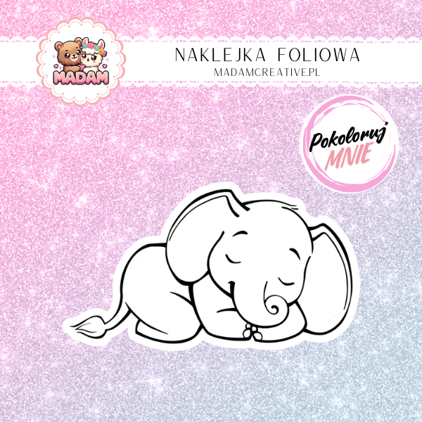 Naklejka do Kolorowania dla Dzieci Śpiący Słoń – Słodkie Sny na Długą Noc! MaDam Creative