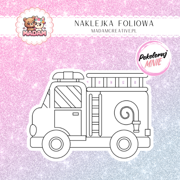 Naklejka do Kolorowania dla Dzieci Wóz Strażacki – Strażnik Płomiennych Marzeń! MaDam Creative