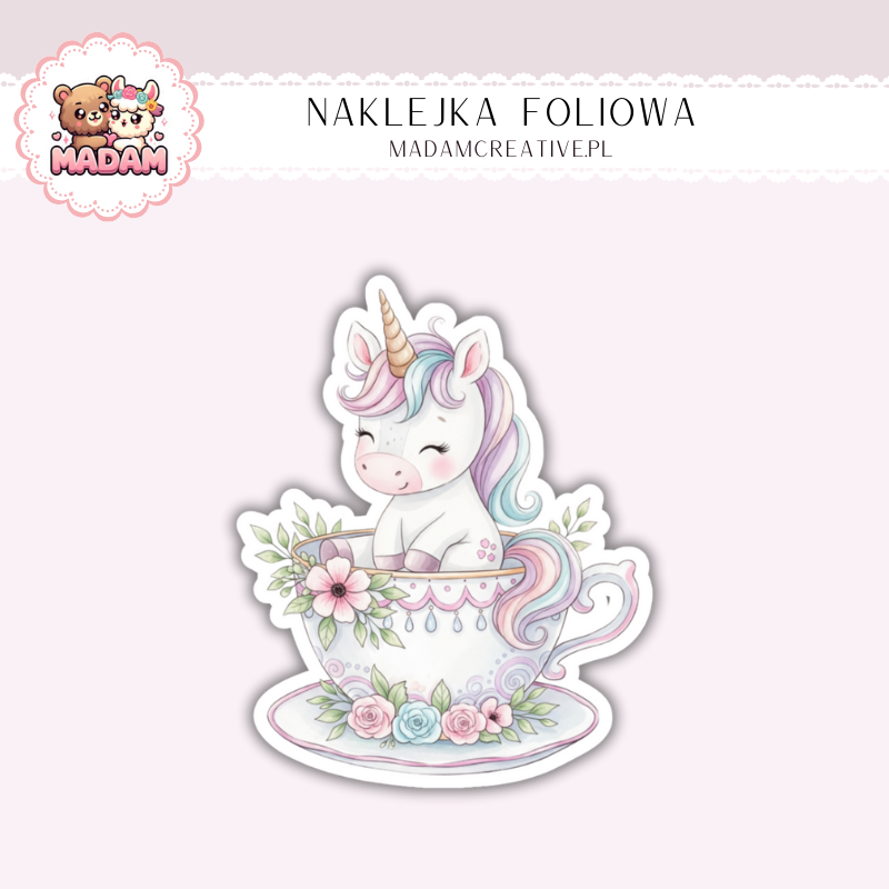 Naklejka foliowa jednorożec w filiżance MaDam Creative