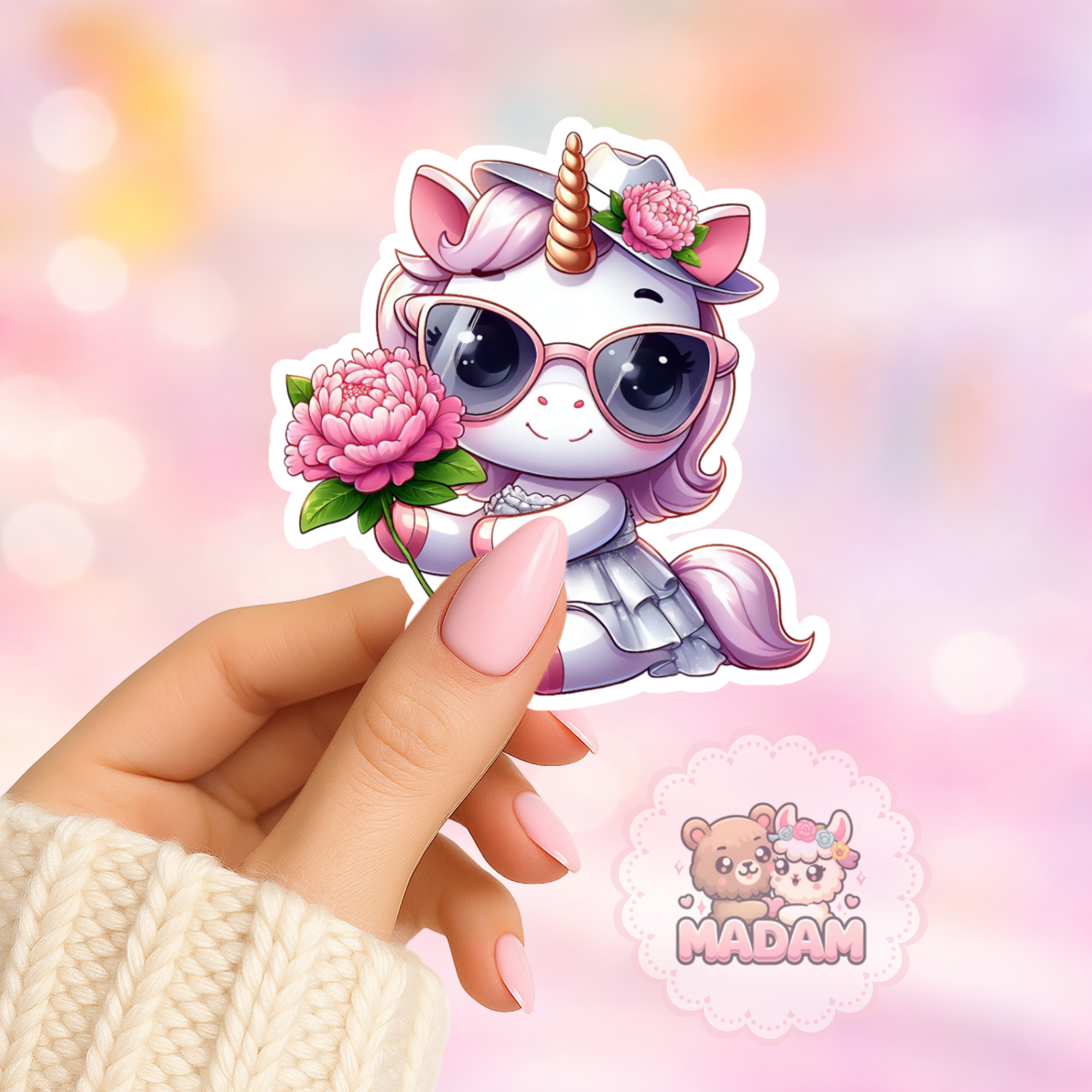 Naklejka foliowa jednorożec z kwiatem MaDam Creative