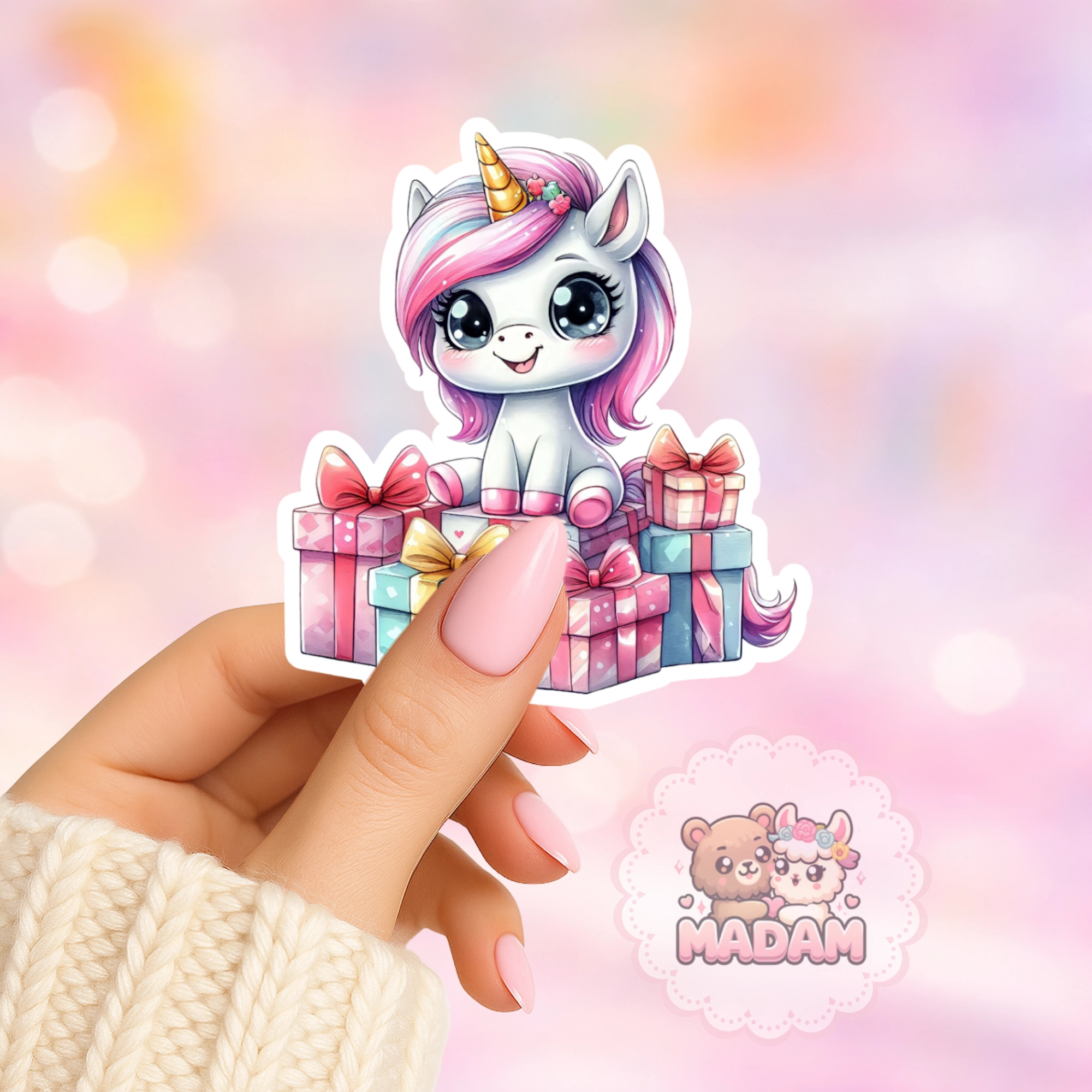 Naklejka foliowa jednorożec z prezentami MaDam Creative