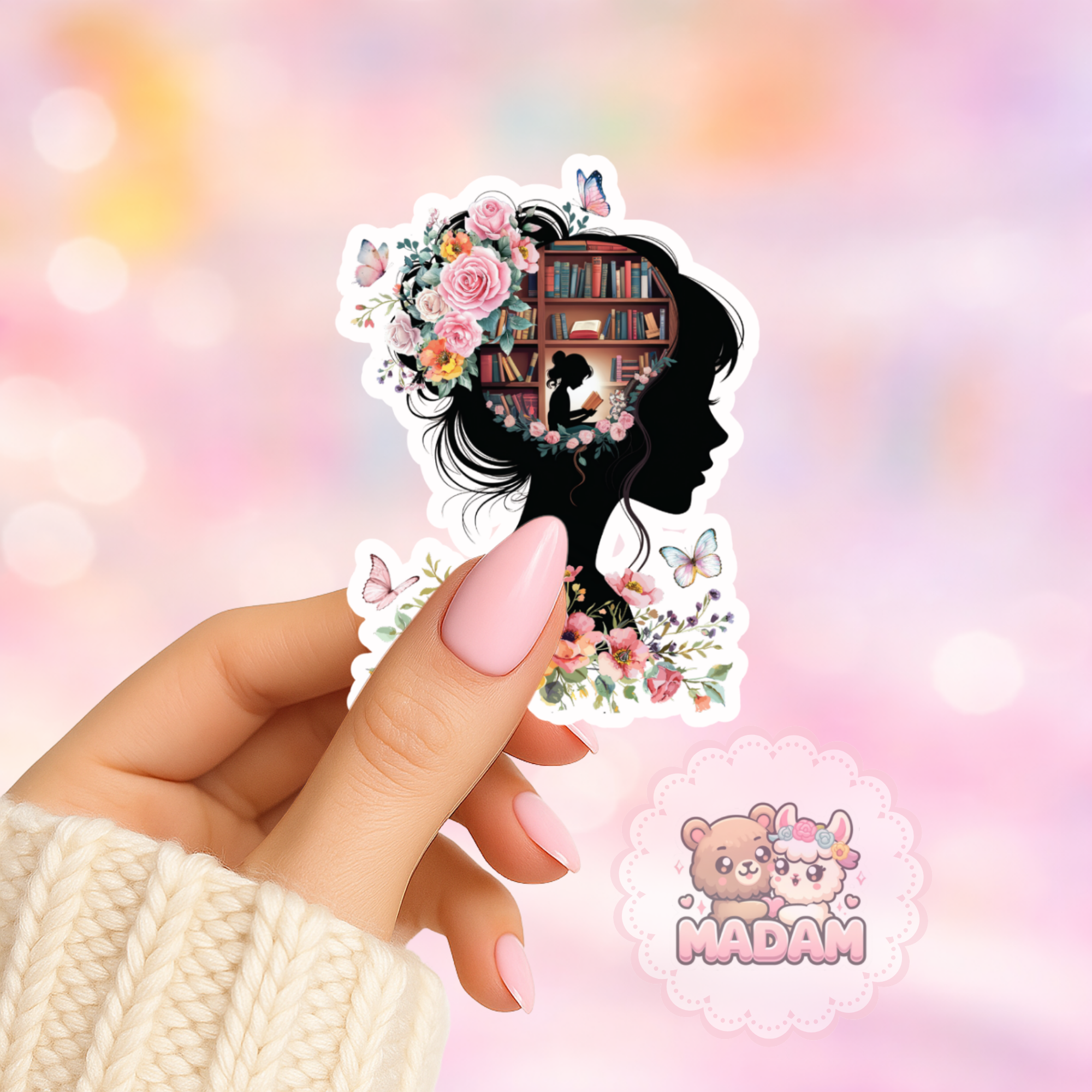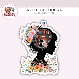 Naklejka foliowa kobieta z książkami i kwiatami MaDam Creative