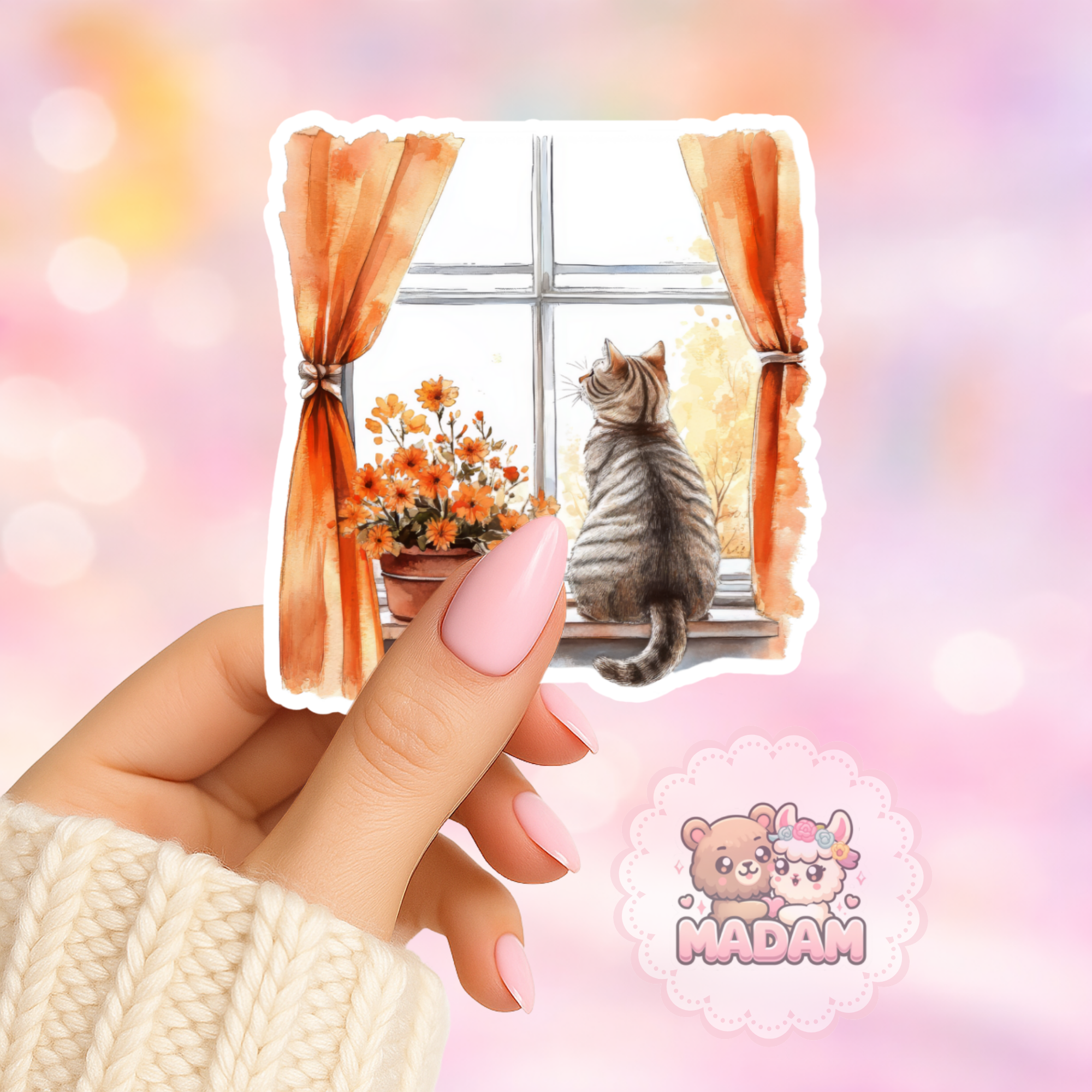 Naklejka foliowa kot przy oknie jesień MaDam Creative
