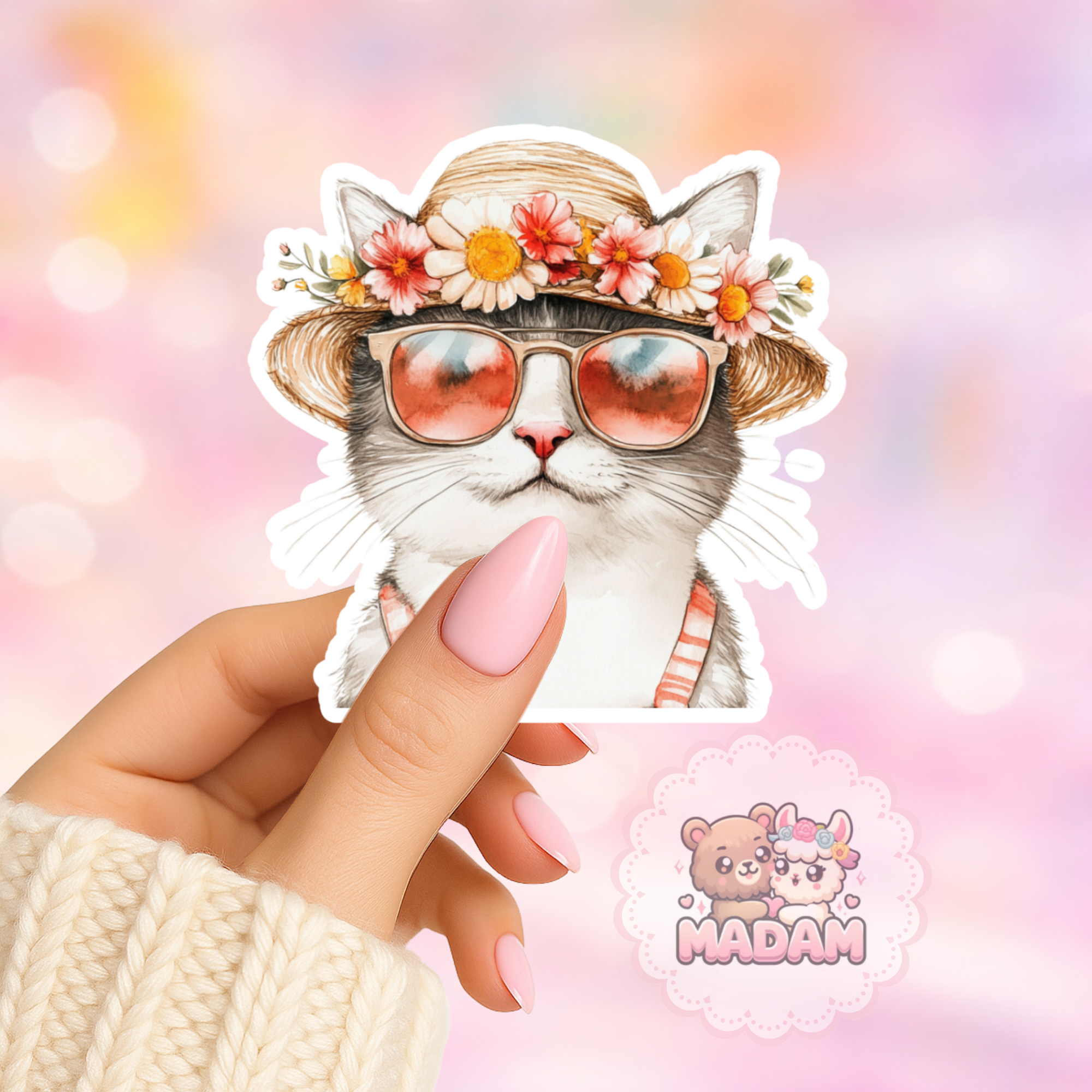 Naklejka foliowa kot w kapeluszu i okularach MaDam Creative