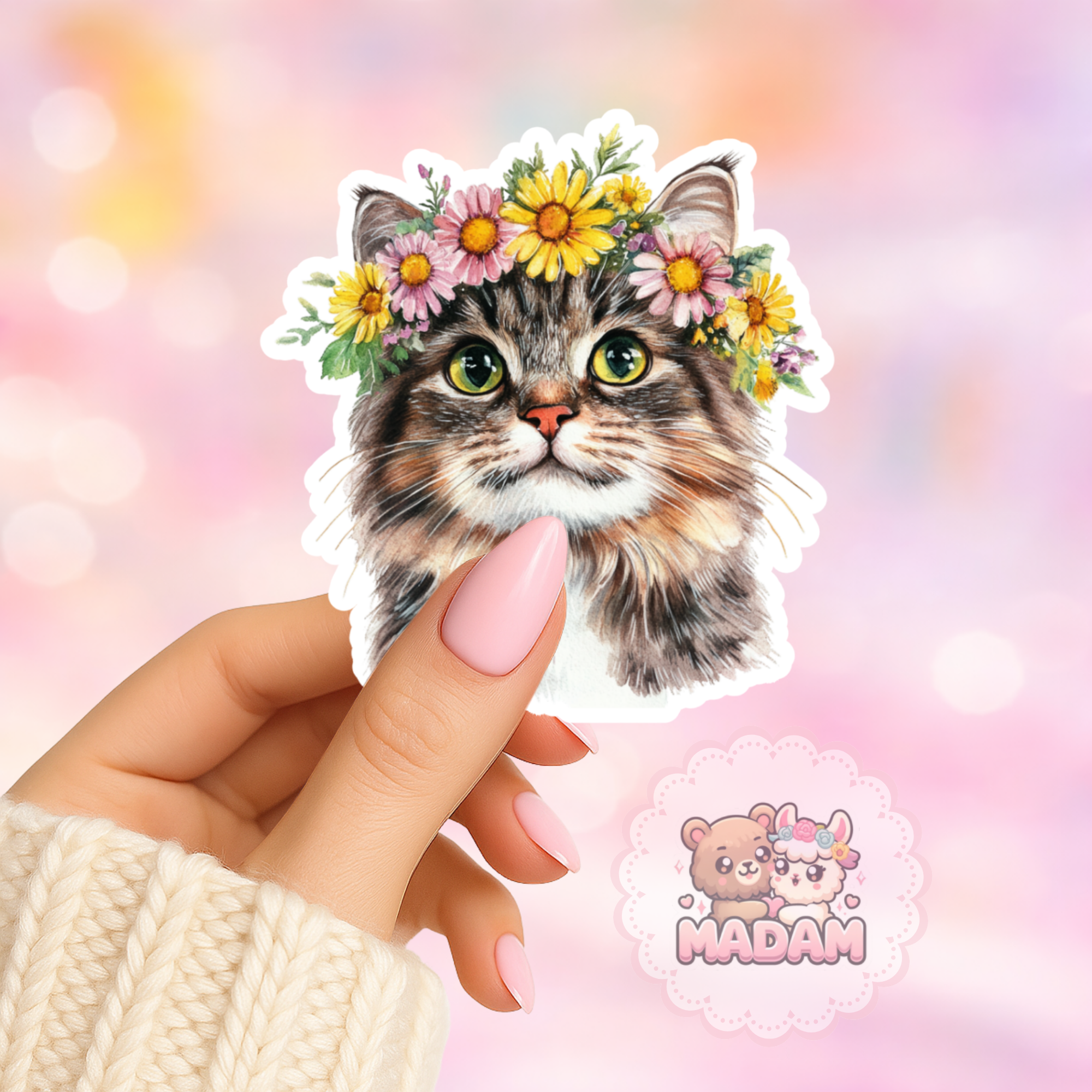 Naklejka foliowa kot z wiankiem kwiatowym MaDam Creative