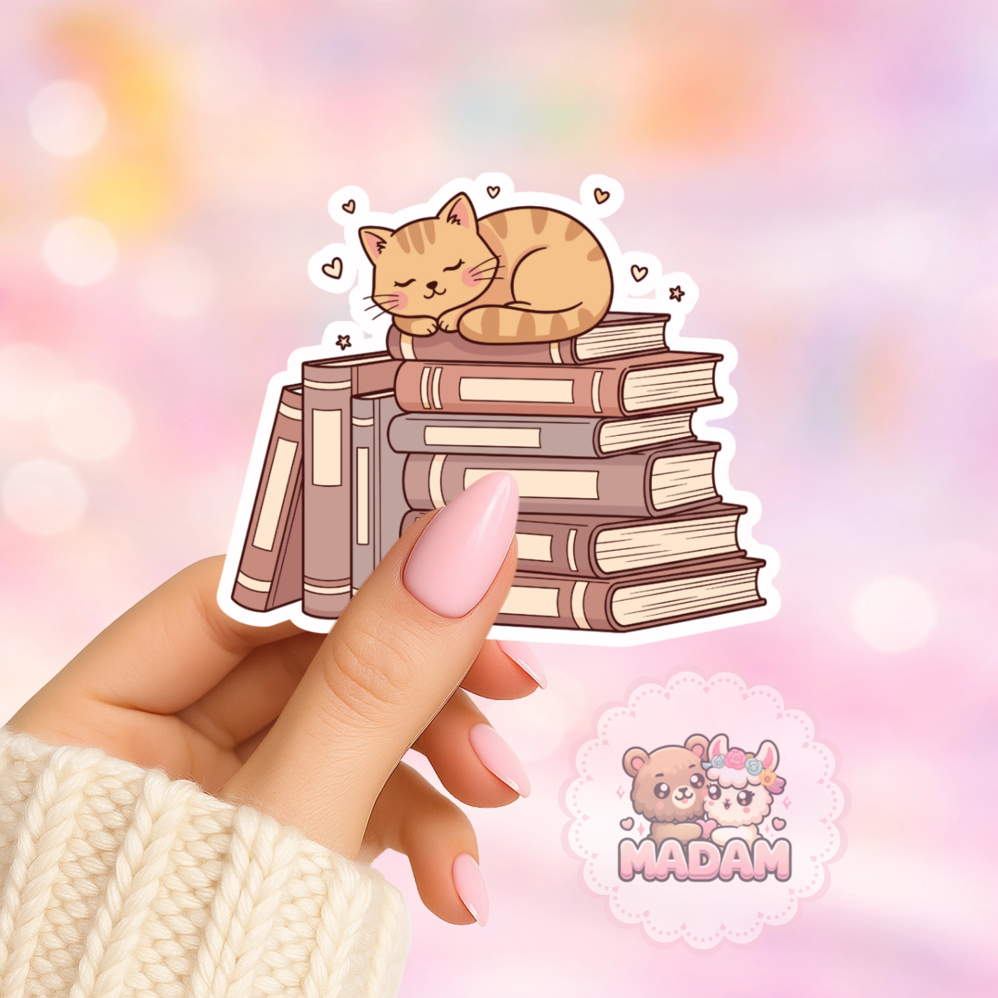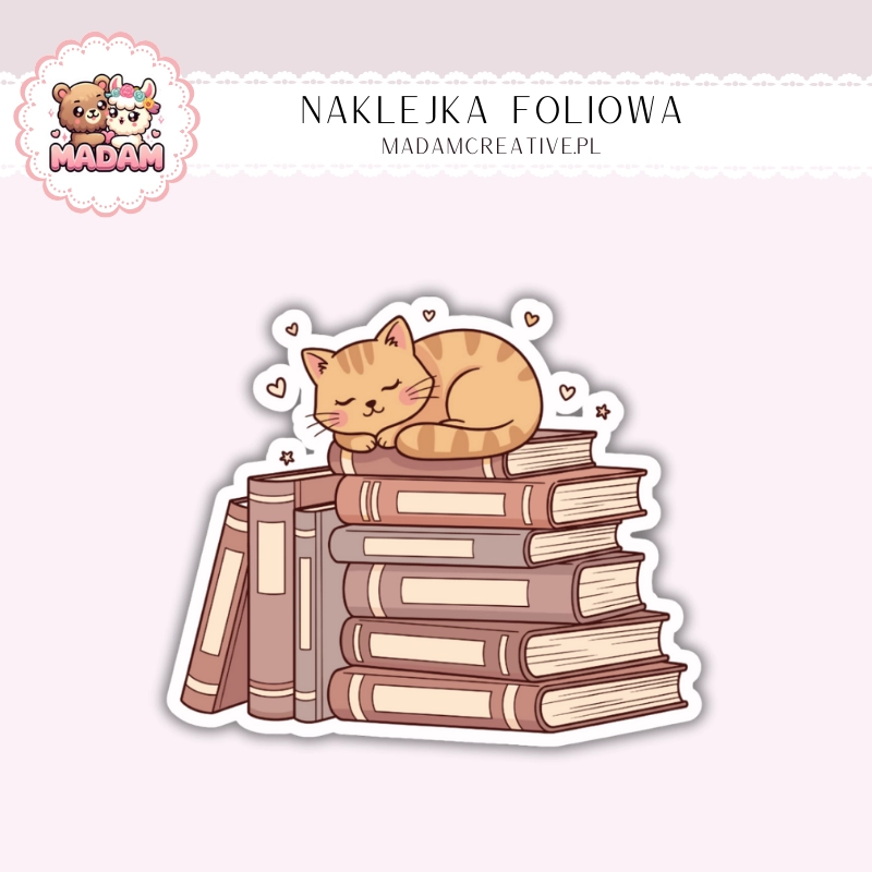 Naklejka foliowa kotek na stosie książek MaDam Creative