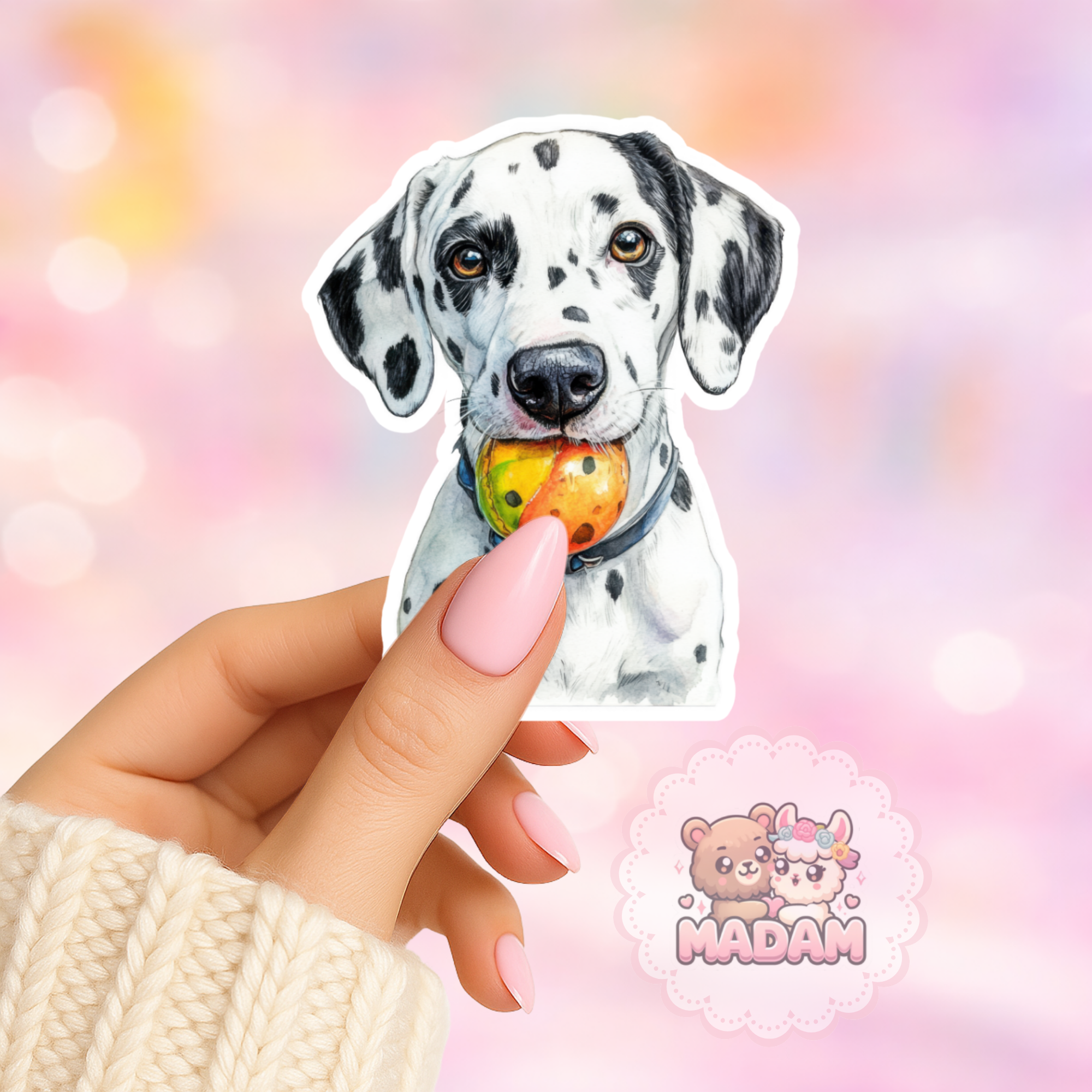 Naklejka foliowa piesek dalmatyńczyk z piłką MaDam Creative
