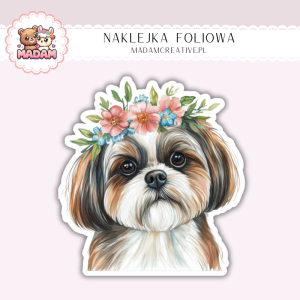 Naklejka foliowa piesek shih tzu z wiankiem MaDam Creative