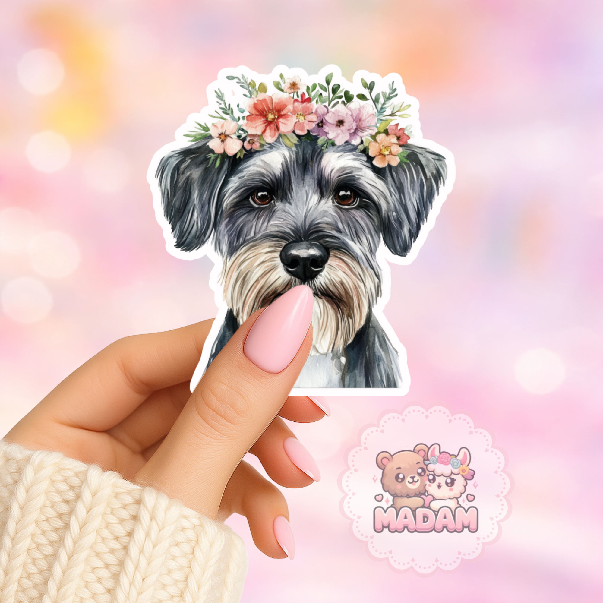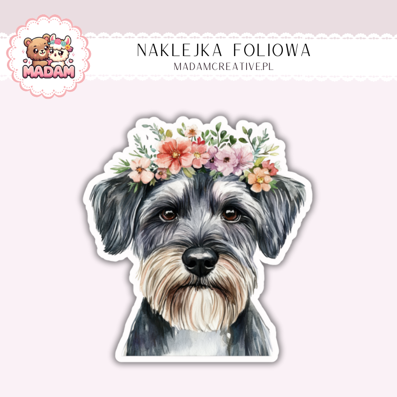 Naklejka foliowa piesek sznaucer miniaturowy z wiankiem MaDam Creative