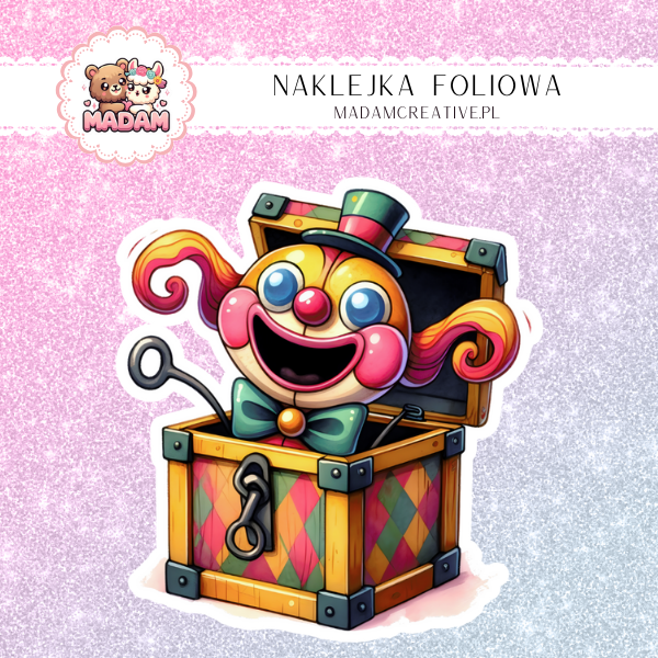 Naklejka foliowa pojedyncza, MaDam Klaun z pudełka