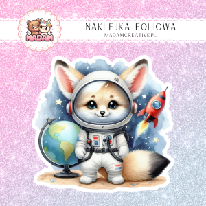 Naklejka foliowa pojedyncza, MaDam Lisek Kosmonauta Orbitujący Łobuz
