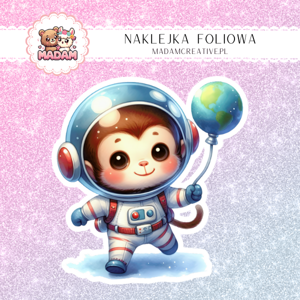 Naklejka foliowa pojedyncza, MaDam Małpka Kosmonauta Zodiakalny Zabawiak