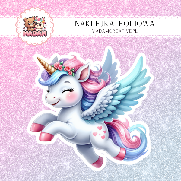 Naklejka foliowa pojedyncza, MaDam Unicorn Jednorożec Czarodziejska Przełęcz