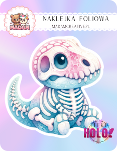 Naklejka foliowa pojedyncza Holograficzna MaDam Dinozaur Szkieletorek Dino – Nawet szkieletor ma apetyt na przygody!