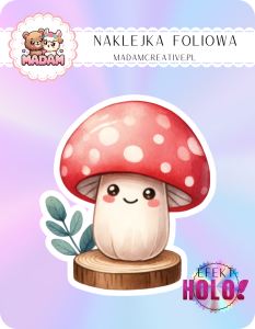 Naklejka foliowa pojedyncza Holograficzna MaDam Grzybek Gustaw – Leśny przyjaciel, który zawsze trzyma fason!