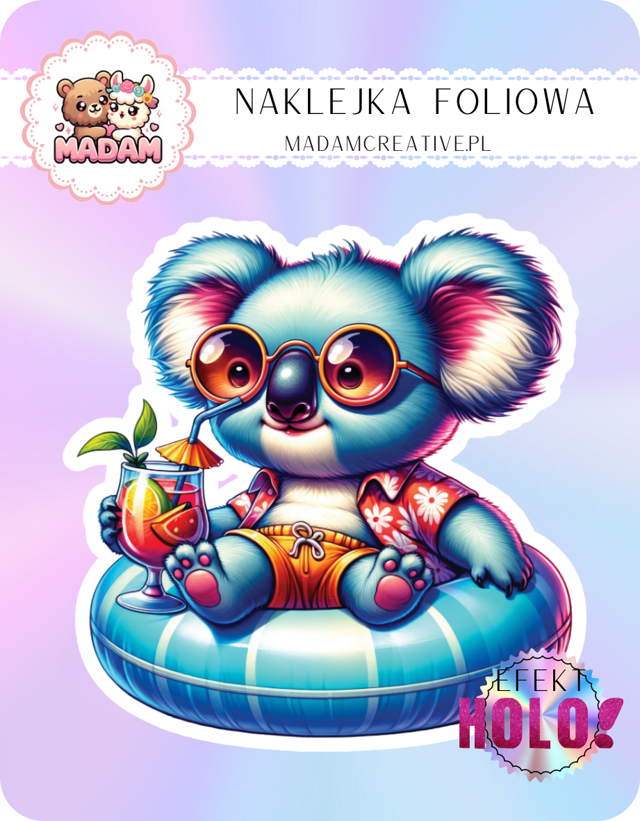 Naklejka foliowa pojedyncza Holograficzna MaDam Koala Kuba – Na basenie zawsze w dobrym stylu!
