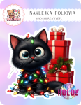 Naklejka foliowa pojedyncza Holograficzna MaDam Kotek Klemens – Najlepszy pomocnik Mikołaja, mistrz owijania wstążek!