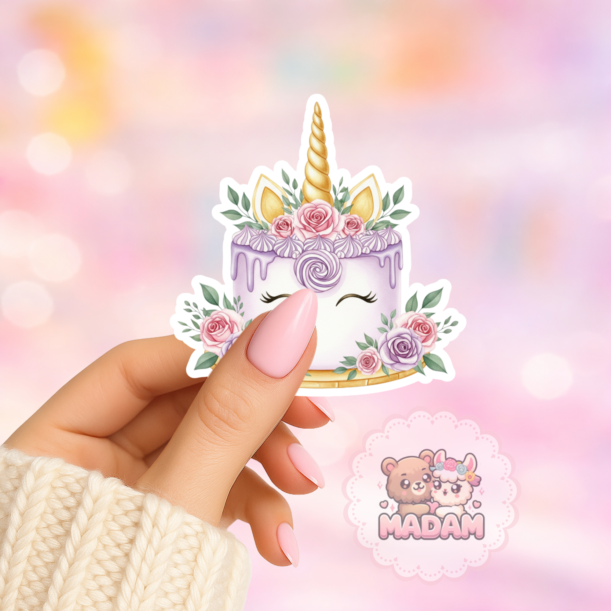 Naklejka foliowa tort jednorożec pastelowy MaDam Creative