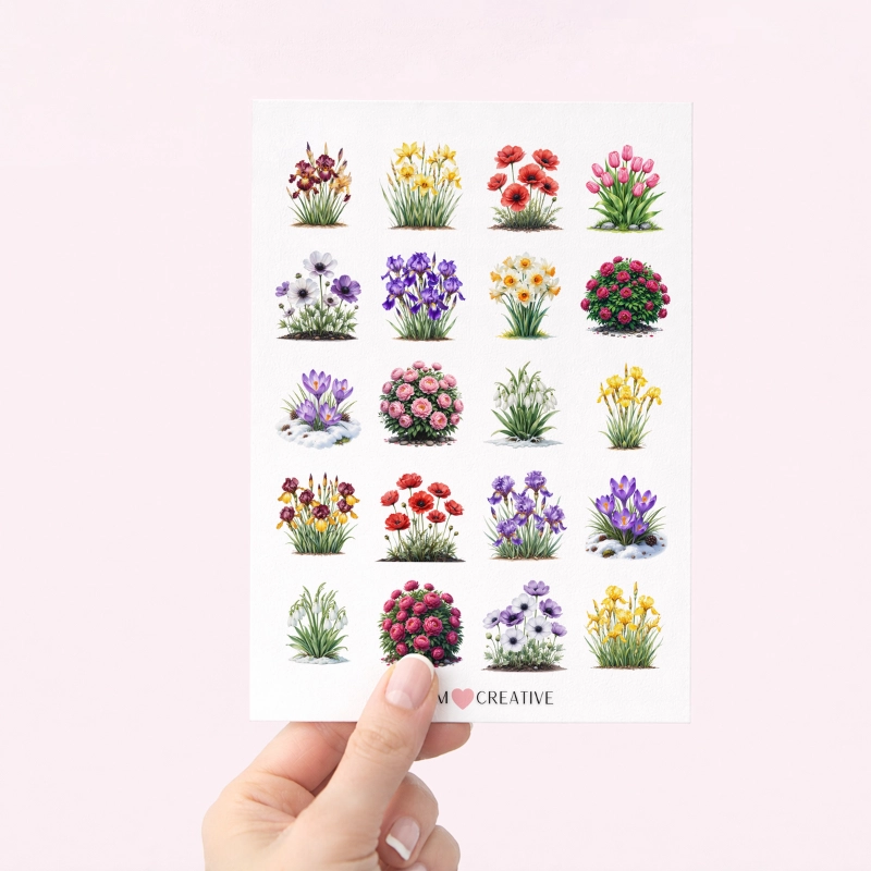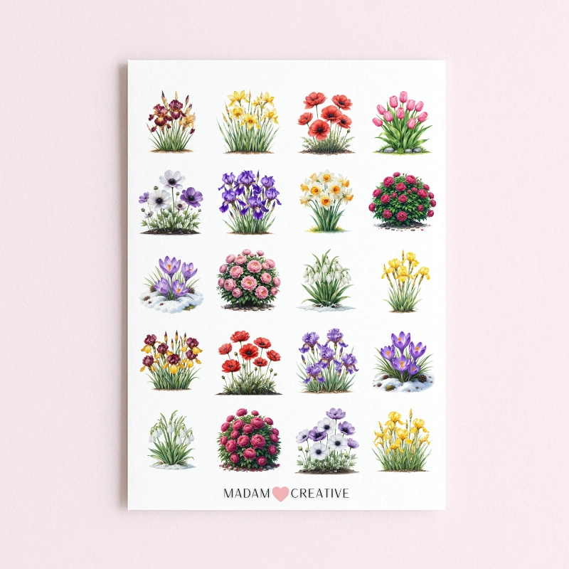 Naklejki Foliowe 13x19 Kolekcja akwarelowych kwiatów wiosennych MaDam Creative