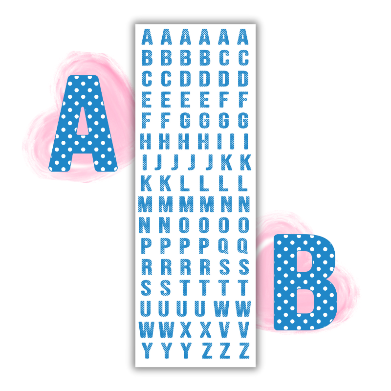 Naklejki Foliowe Alfabet Niebieski w Białe Kropki – Klasyczne litery w dziecięcym stylu! Madam