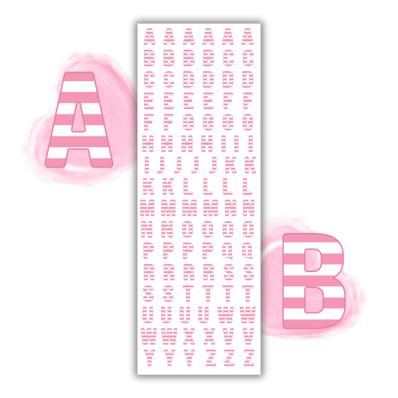 Naklejki Foliowe Alfabet w Różowo-Białe Pasy – Uroczy styl do kreatywnej nauki! Madam