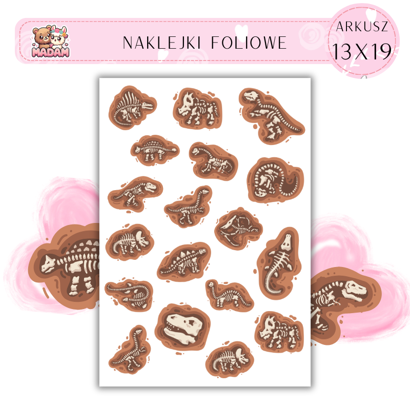 Naklejki Foliowe Dinozaury Wykopaliska 13x19, Madam
