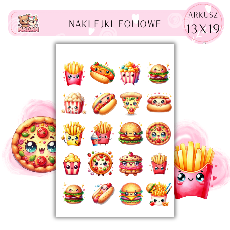 Naklejki Foliowe Kawaii Jedzenie Fast Food 13x19, Madam