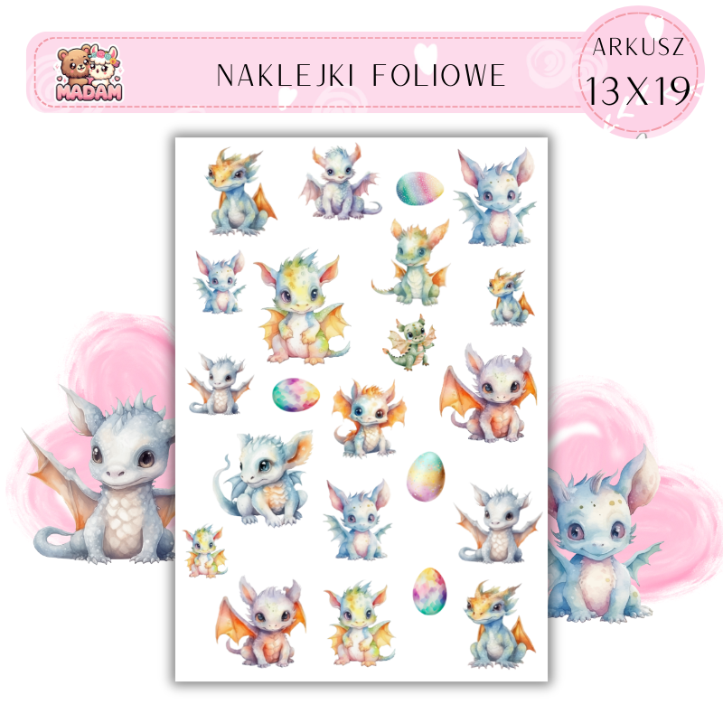 Naklejki Foliowe Kolorowe Smoki 13x19, Madam
