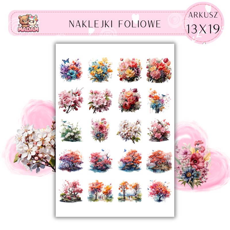 Naklejki Foliowe Kwiaty Drzewa Park 13x19, Madam