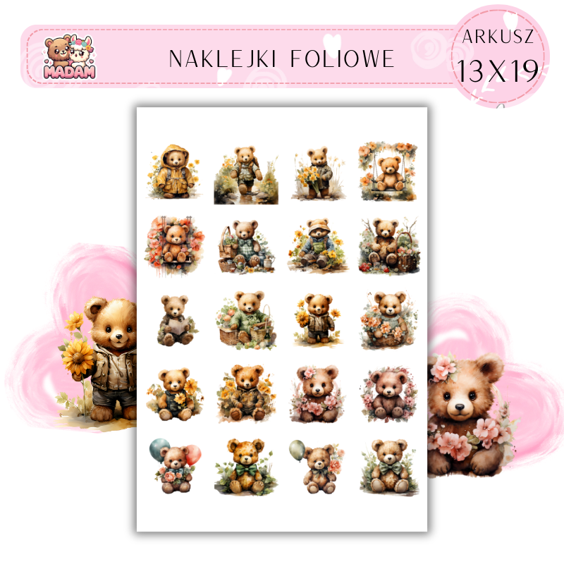 Naklejki Foliowe Misie i Kwiaty 13x19, Madam