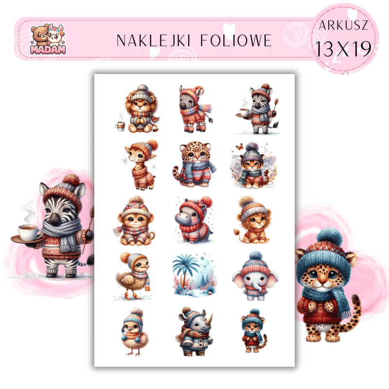 Naklejki Foliowe Zimowe Zwierzęta 13x19, Madam