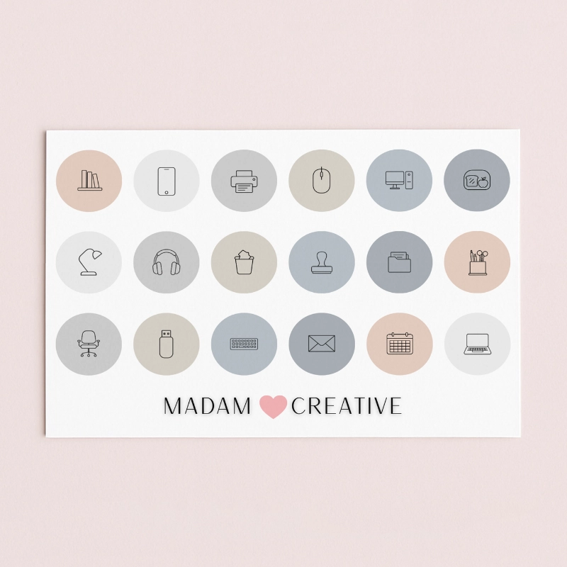 Naklejki Ikony Funkcyjne do Planera i Bullet Journal Biurowe Niezbędniki Minimal 13x9 MaDam Creative