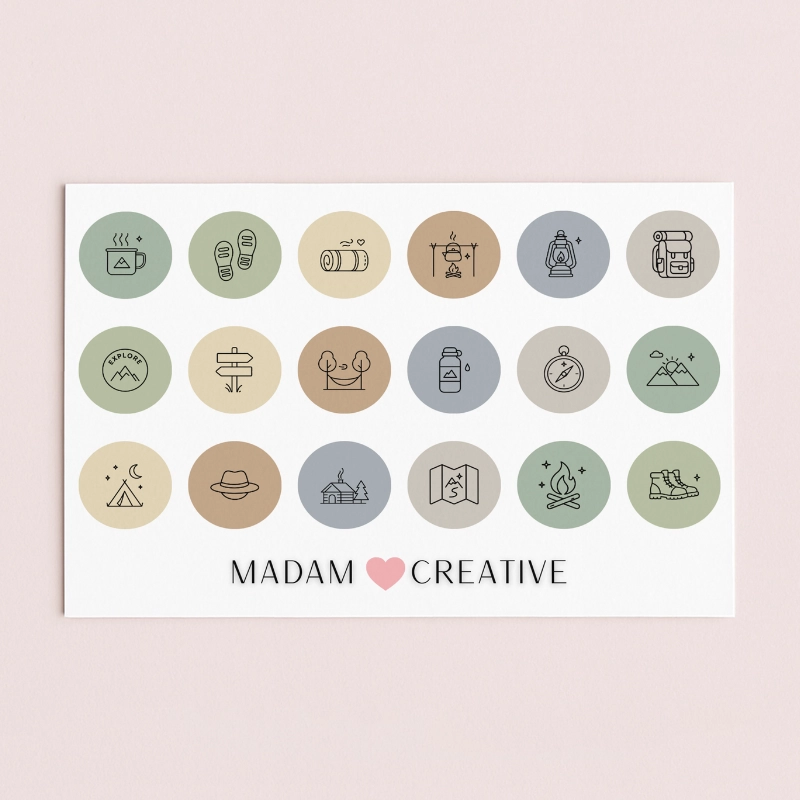 Naklejki Ikony Funkcyjne do Planera i Bullet Journal Camping i Wędrówki 13x9 MaDam Creative